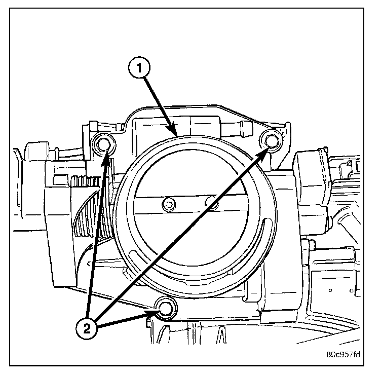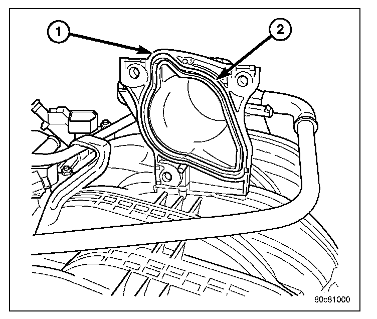 7. Check condition of old throttle body-to-intake manifold O-ring (2).