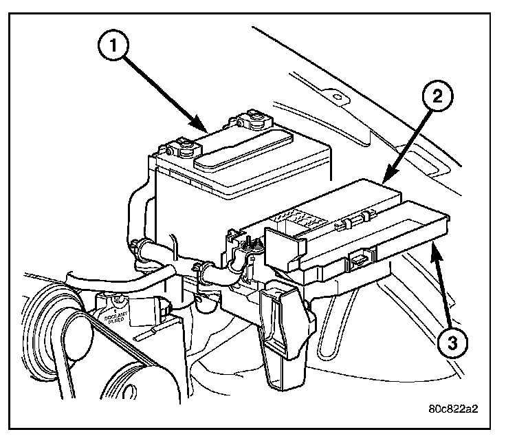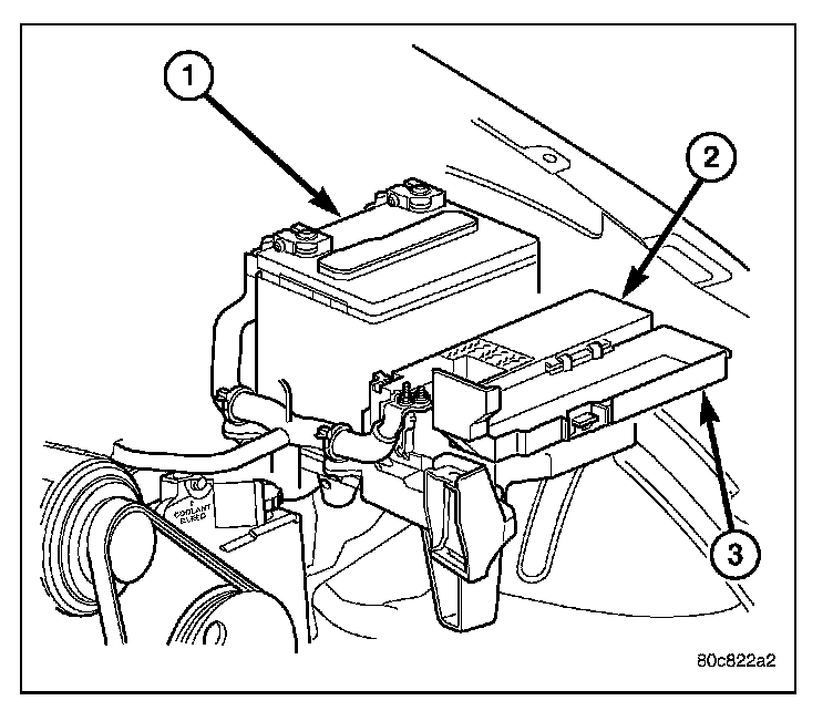 REMOVALThe fuel pump relay is located in the Power Distribution Center (PDC) (2). Refer to label on PDC cover (3) for relay location.