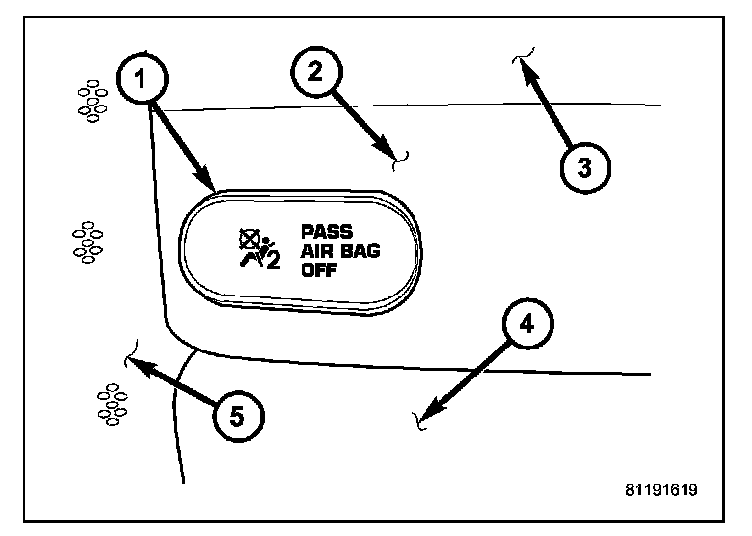 - Passenger Airbag (2) - The passenger airbag is located on the instrument panel, beneath the passenger airbag door and above the glove box on the passenger side of the vehicle.