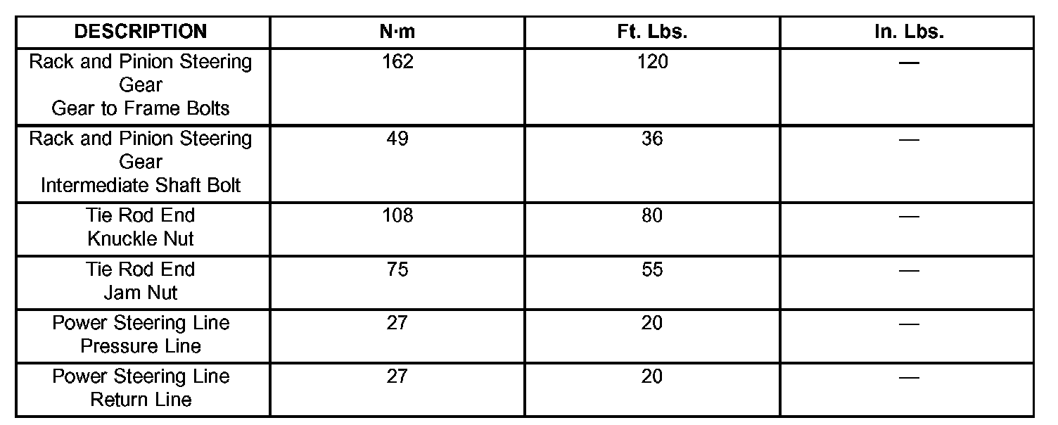TORQUE SPECIFICATIONS: