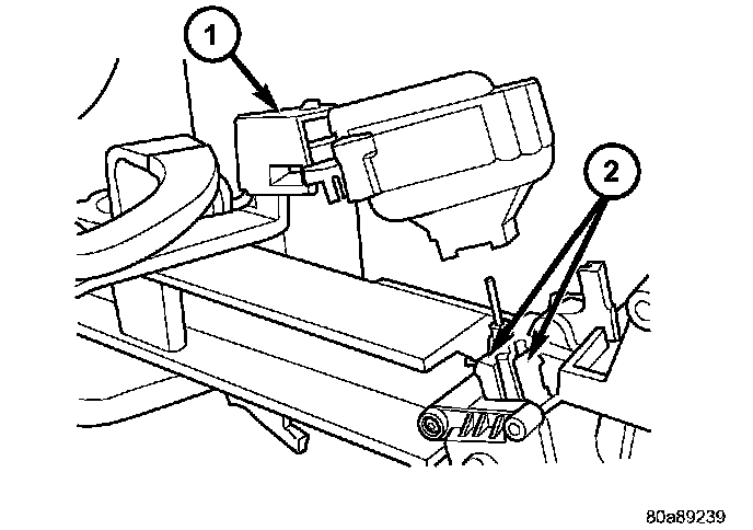 6. Pull the ignition switch (1) straight out to remove from the locking tabs (2).