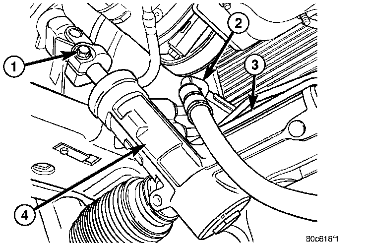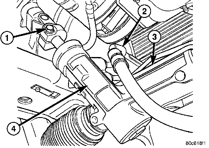 8. Remove the lower intermediate shaft coupler pinch bolt (1) and slide the coupler off the gear (4).