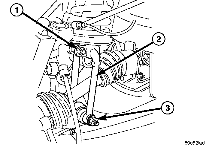 3. Remove the lower clevis bolt (3) at the lower control arm.