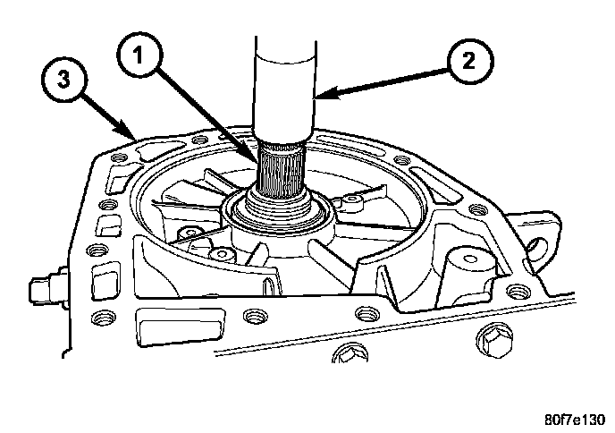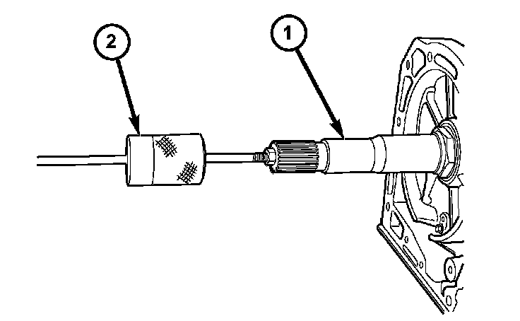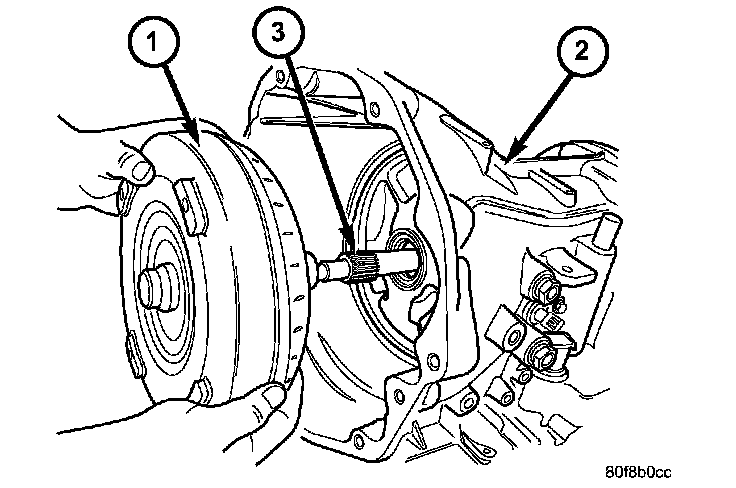 1. Remove the torque converter (1) from the transmission input shaft (3).