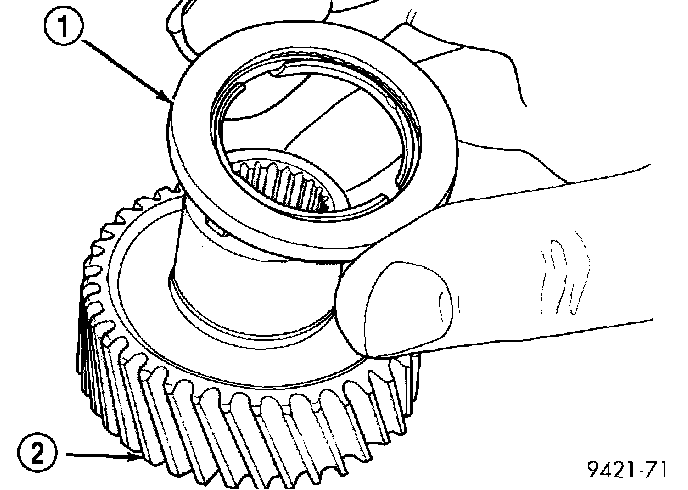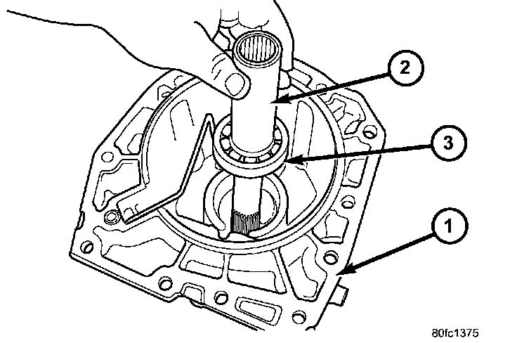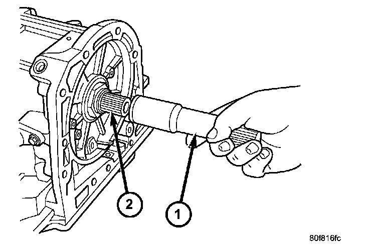 b. Remove the extension shaft and bearing assembly (2) from the extension housing (1).