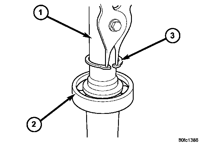 c. Remove the extension shaft bearing retaining ring (3) from the extension shaft (1).