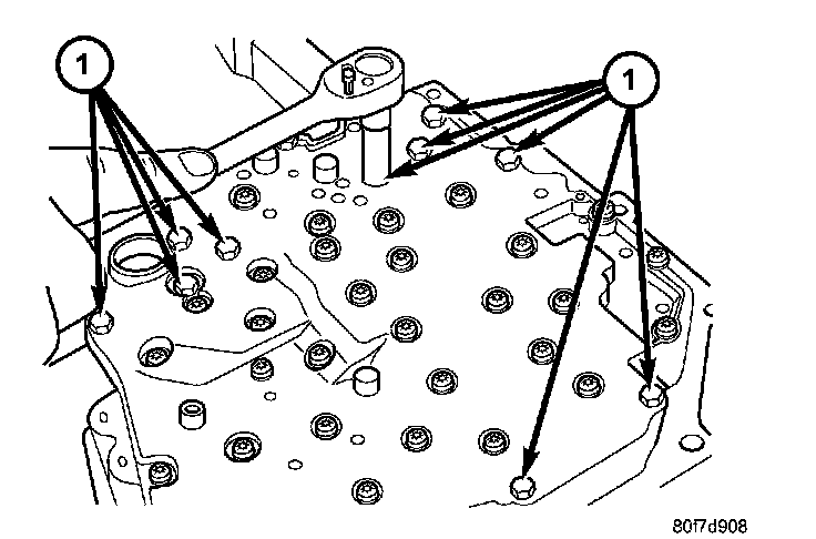 19. Remove valve body-to-case bolts (1).