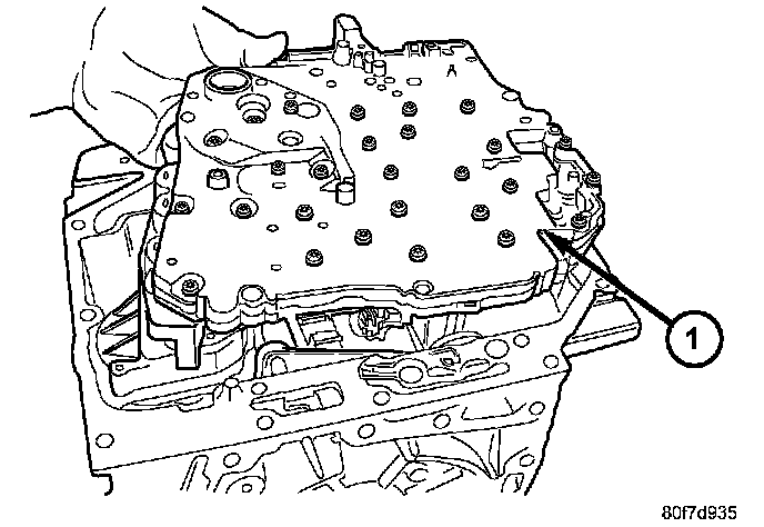 20. Remove valve body (1) from transmission.