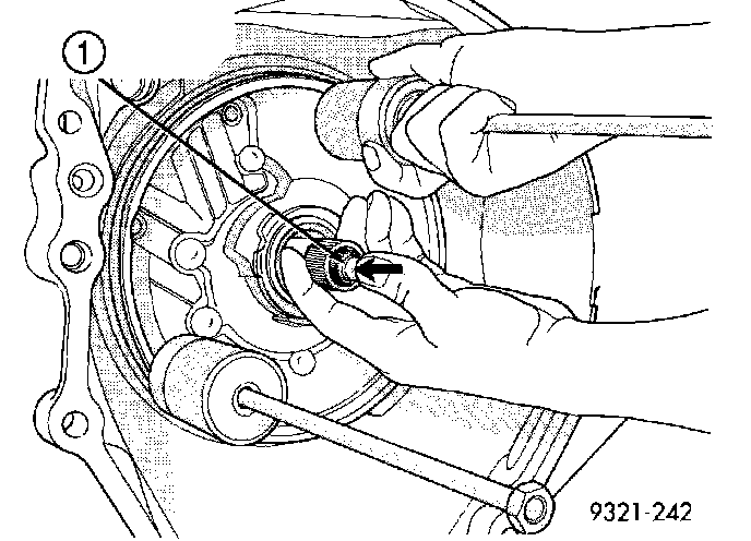 28. Remove oil pump while pushing in on input shaft (1).