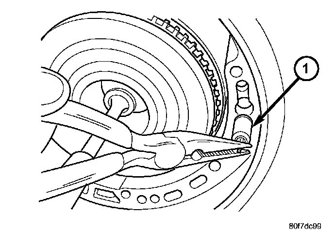 24. Remove low/reverse accumulator piston (1) using suitable pliers.
