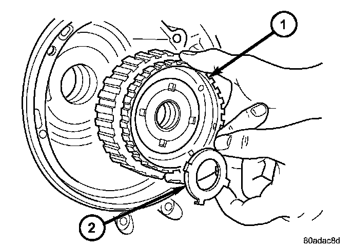 40. Remove the 2/4 clutch pack (1, 2).