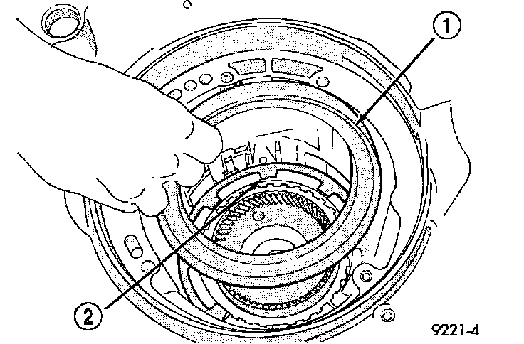 44. Remove the low/reverse reaction plate snap ring (2).