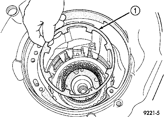 61. Remove low/reverse piston retainer (1).