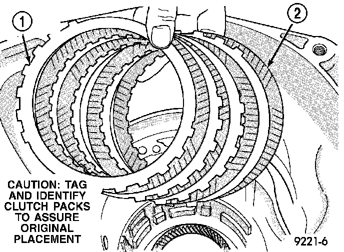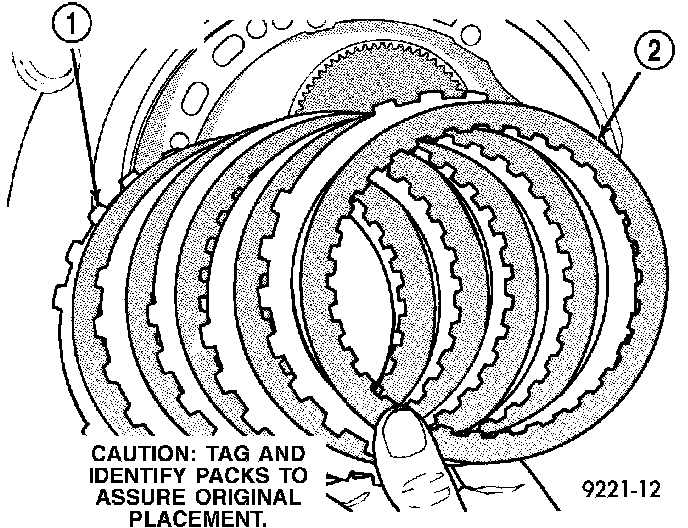 NOTE: Tag all clutch pack assemblies, as they are removed, for reassembly identification.