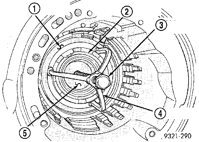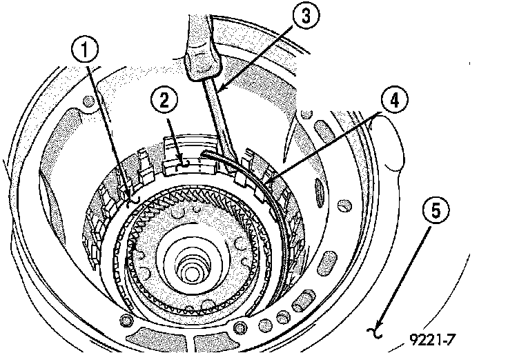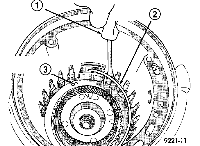 43. Remove one (1) low/reverse clutch disc to facilitate snap ring removal.