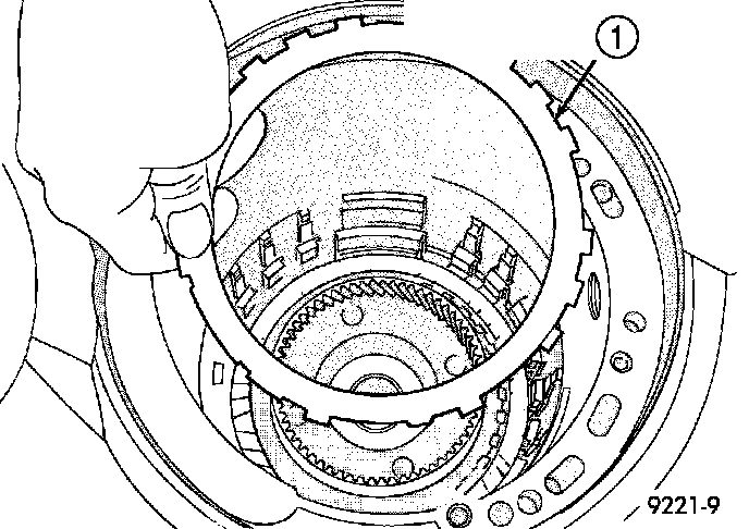 38. Remove the 2/4 clutch retainer (1).
