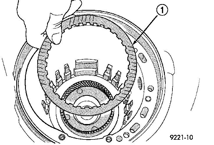 42. Remove the low/reverse reaction plate (1).