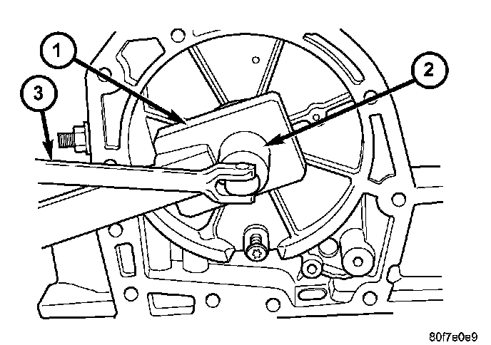 33. Remove the #4 thrust plate (2).