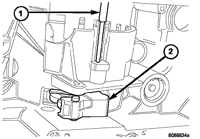 21. Remove underdrive and overdrive accumulators (1, 2).