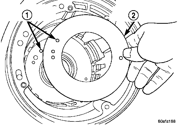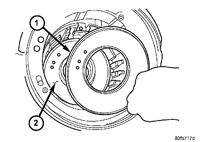 45. Remove the low/reverse clutch pack (1, 2).