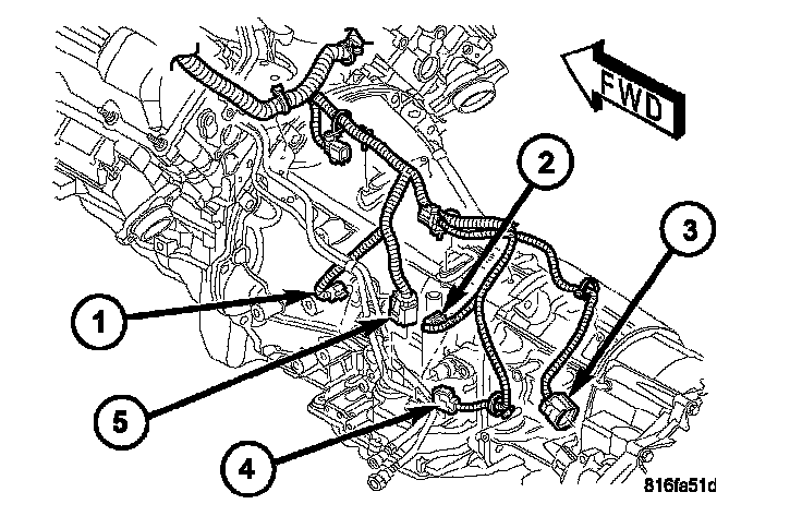 1. Disconnect the transmission range sensor (5) and solenoid/pressure switch assembly wiring connectors.