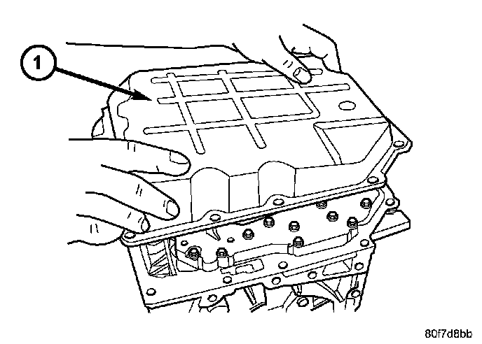 9. Carefully remove valve body assembly (1) from the transmission.