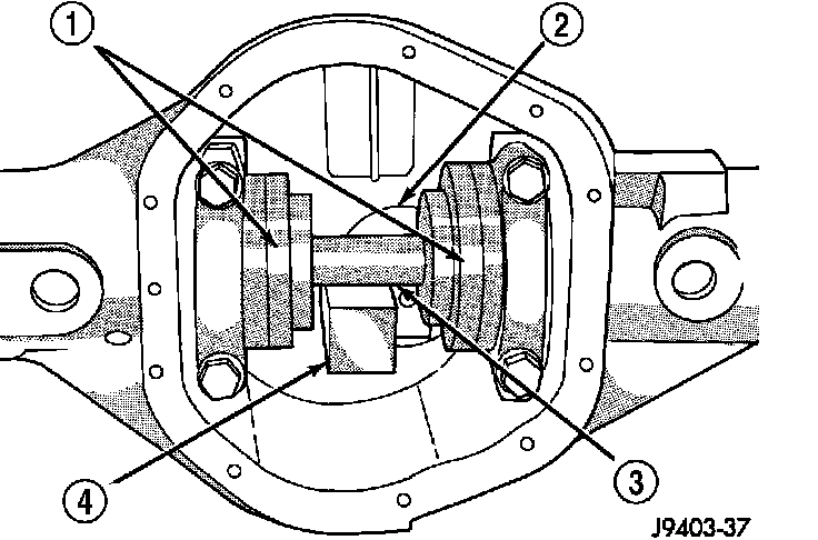 1. Install axle shafts and C-locks and pinion mate shaft.