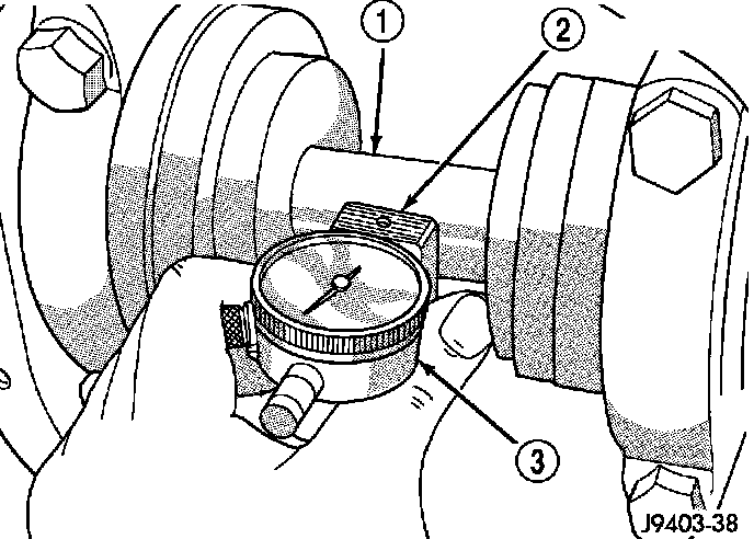 7. Measure the ring gear backlash. The range of backlash is 0.12 to 0.20 mm (0.005 to 0.008 inch).