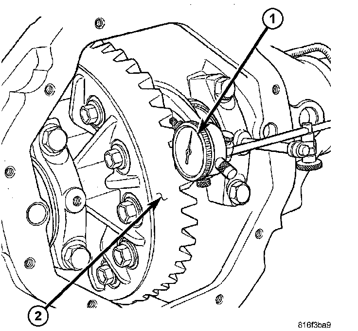^ The maximum ring gear (2) backlash variation is 0.076 mm (0.003 inch).