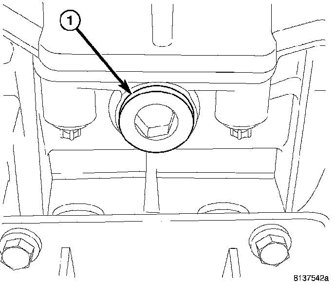3. Remove drain plug (1) and drain fluid.