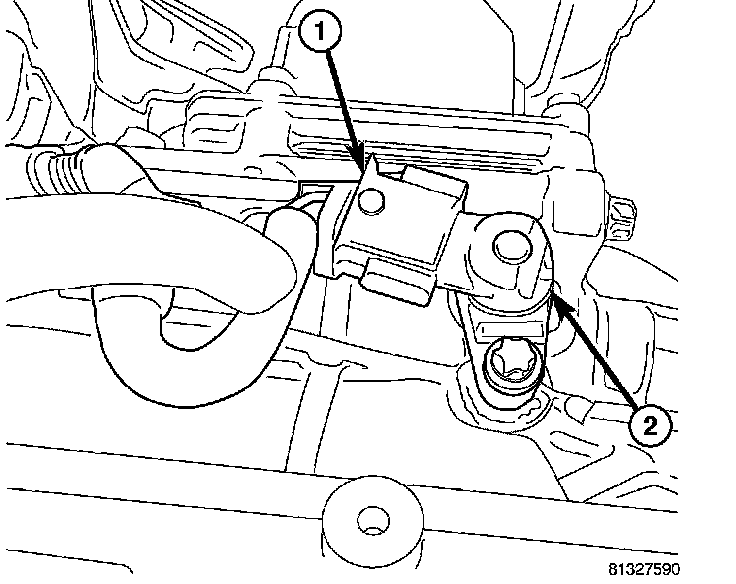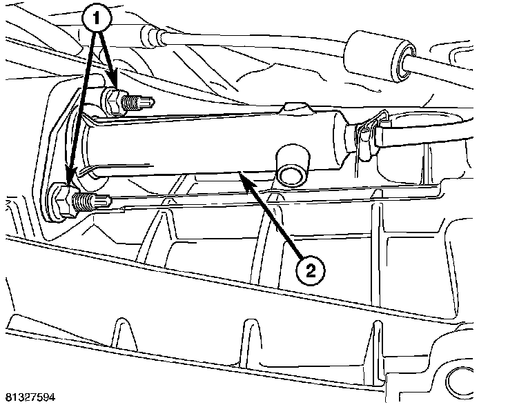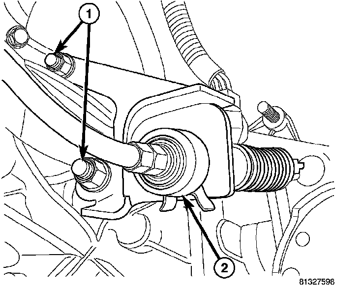 9. Remove clutch slave cylinder nuts (1) and remove cylinder (2).