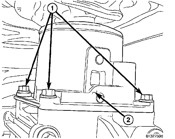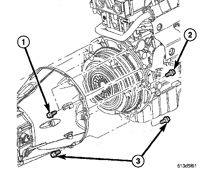 13. Remove transmission bolts (1,2,3) on 3.7L engine and remove transmission.