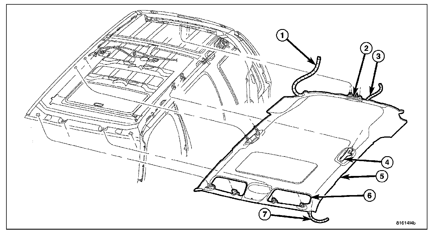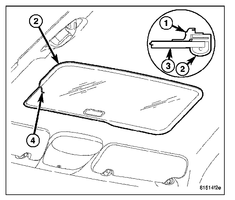10. Remove the sunroof opening trim lace (2), if equipped.