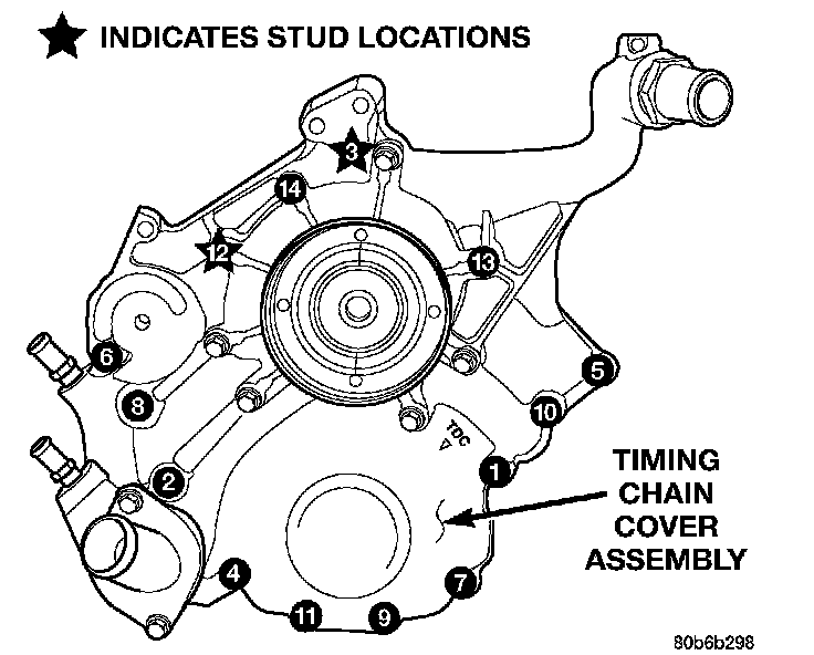 NOTE: It is not necessary to remove the water pump for timing cover removal.