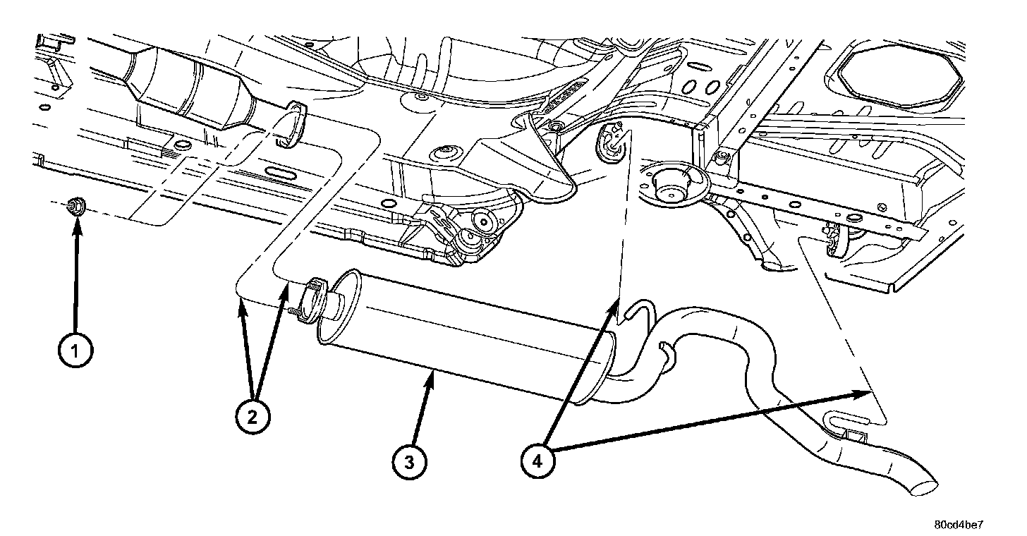 4. Remove muffler and tailpipe assembly (3) from vehicle.