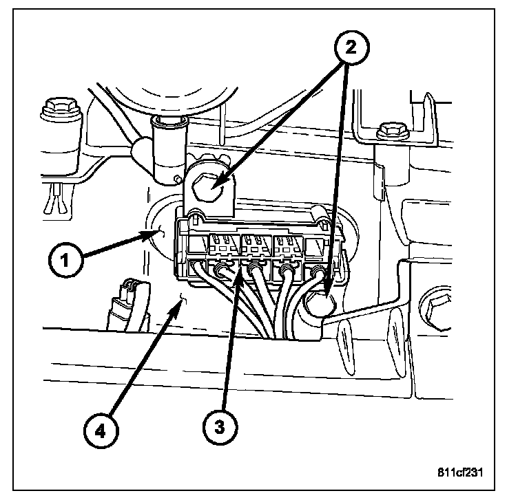 5. Remove the two screws (2) that secure the blower motor resistor to the HVAC housing (4) and remove the resistor.