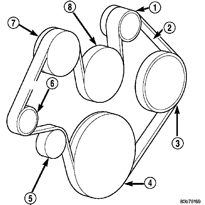 CAUTION: When installing the serpentine accessory drive belt, the belt MUST be routed correctly. If not, the engine may overheat due to the water pump rotating in the wrong direction.