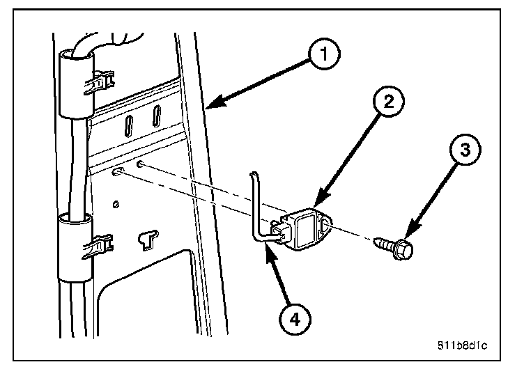 4. Install and tighten the screw (3) that secures the right or left side impact sensor to the inner B-pillar. Tighten the screw to 11 N.m (100 in. lbs.).