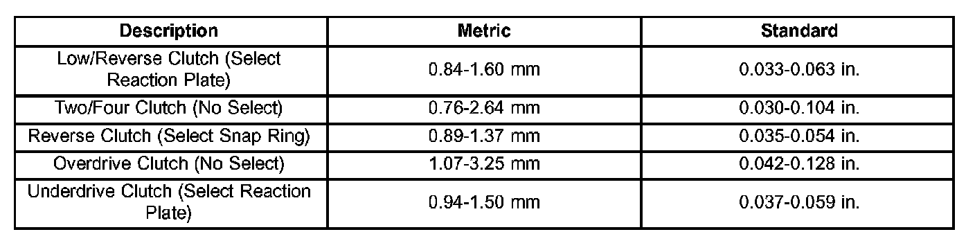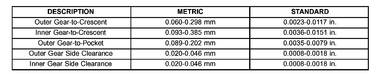 OIL PUMP CLEARANCES: