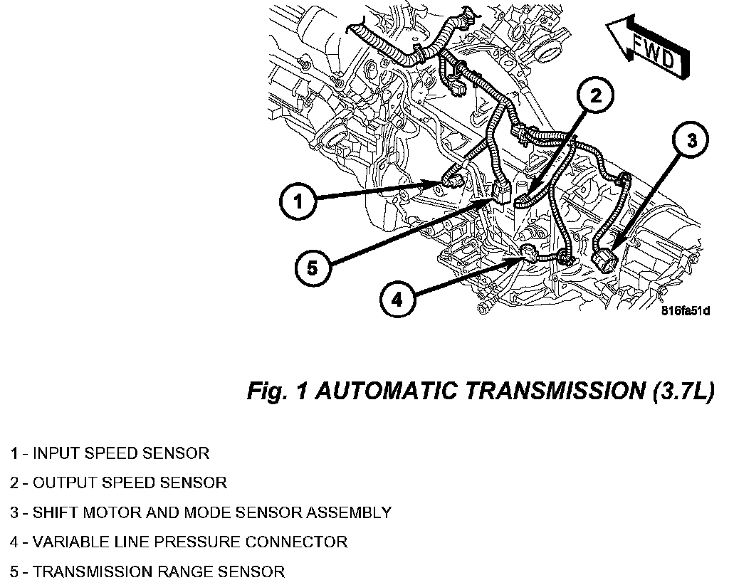 2006 vehicles could be built with either variant. The new transmission can be identified by the sales code of DGV or the new variable line pressure harness connector (Fig. 1).