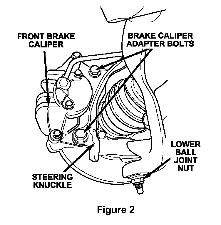 29. Install the brake caliper adapter (with the caliper) onto the steering knuckle. Tighten the caliper adapter mounting bolts to 100 ft. lbs. (135 Nm) (Figure 2).