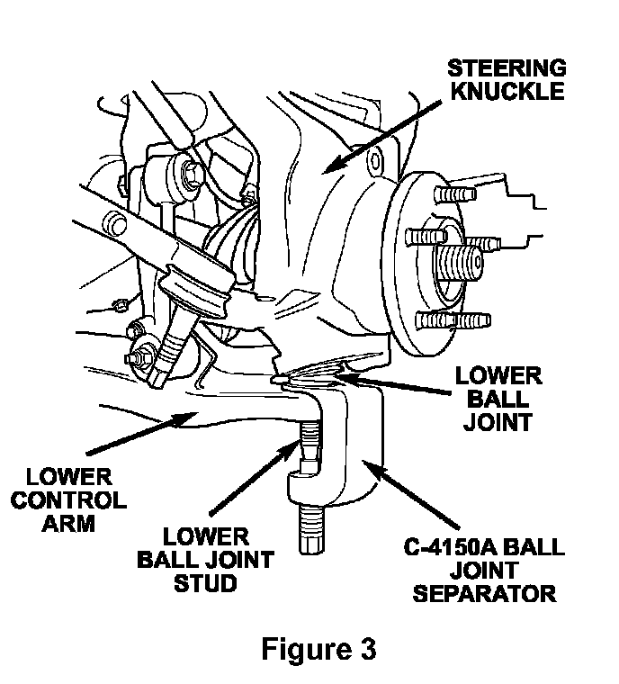10. Separate the lower ball joint from the lower control arm using special tool C-4150A (Figure 3).
