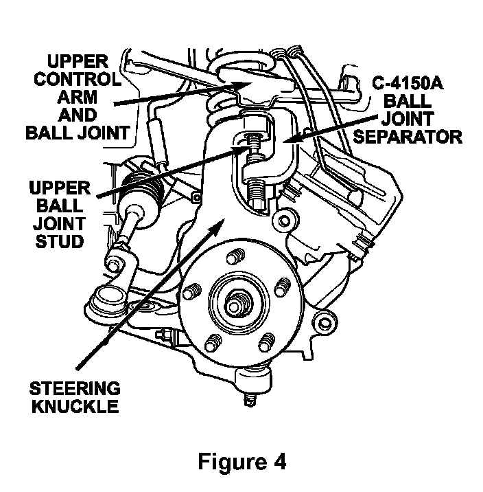 12. Separate the upper ball joint from the knuckle using tool C-4150A (Figure 4).