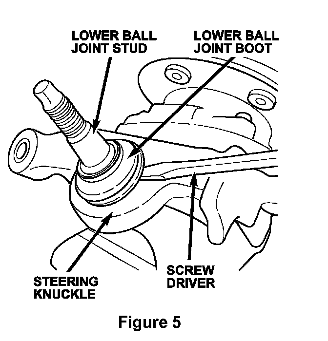 16. Remove and discard the lower ball joint boot and boot retaining clip (Figure 5).