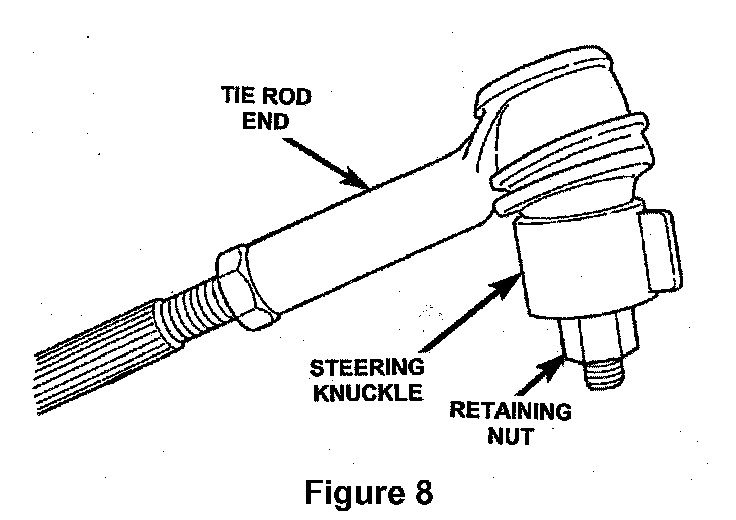 30. Connect the tie rod end to the steering knuckle and install the supplied new retaining nut (Figure 8). Tighten the tie rod end retaining nut to 60 ft. lbs. (81 Nm).