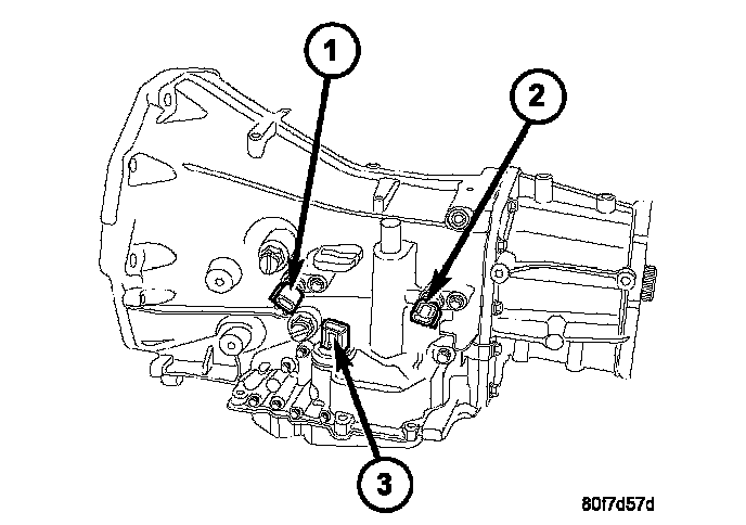 The Input (1) and Output (2) Speed Sensors are two wire magnetic pickup devices that generate AC signals as rotation occurs. They are mounted in the left side of the transmission case and are considered primary inputs to the Transmission Control Module (TCM).