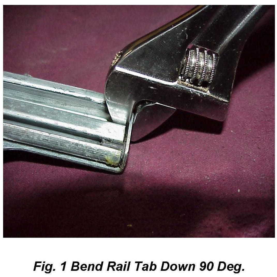 5. Use the 8 inch adjustable wrench to bend down lower Rail Bracket Tab 90° (Fig 1).