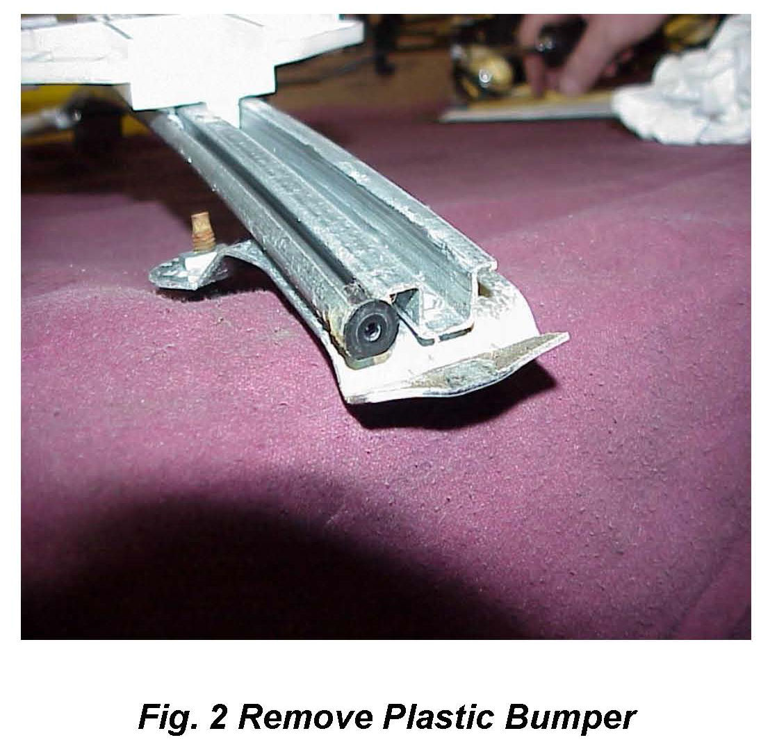 6. Remove and save the small black plastic bumper located in the end of the rail (Fig 2).