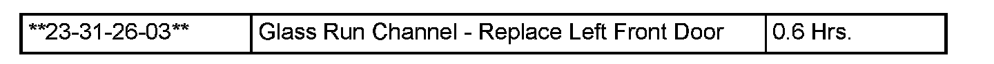 21. Following the procedures in DealerCONNECT > TechCONNECT under: Service Info > 23 - Body > Door-Front / Rear > Channel, Door Glass, to replace the Glass Run Channel Seal.