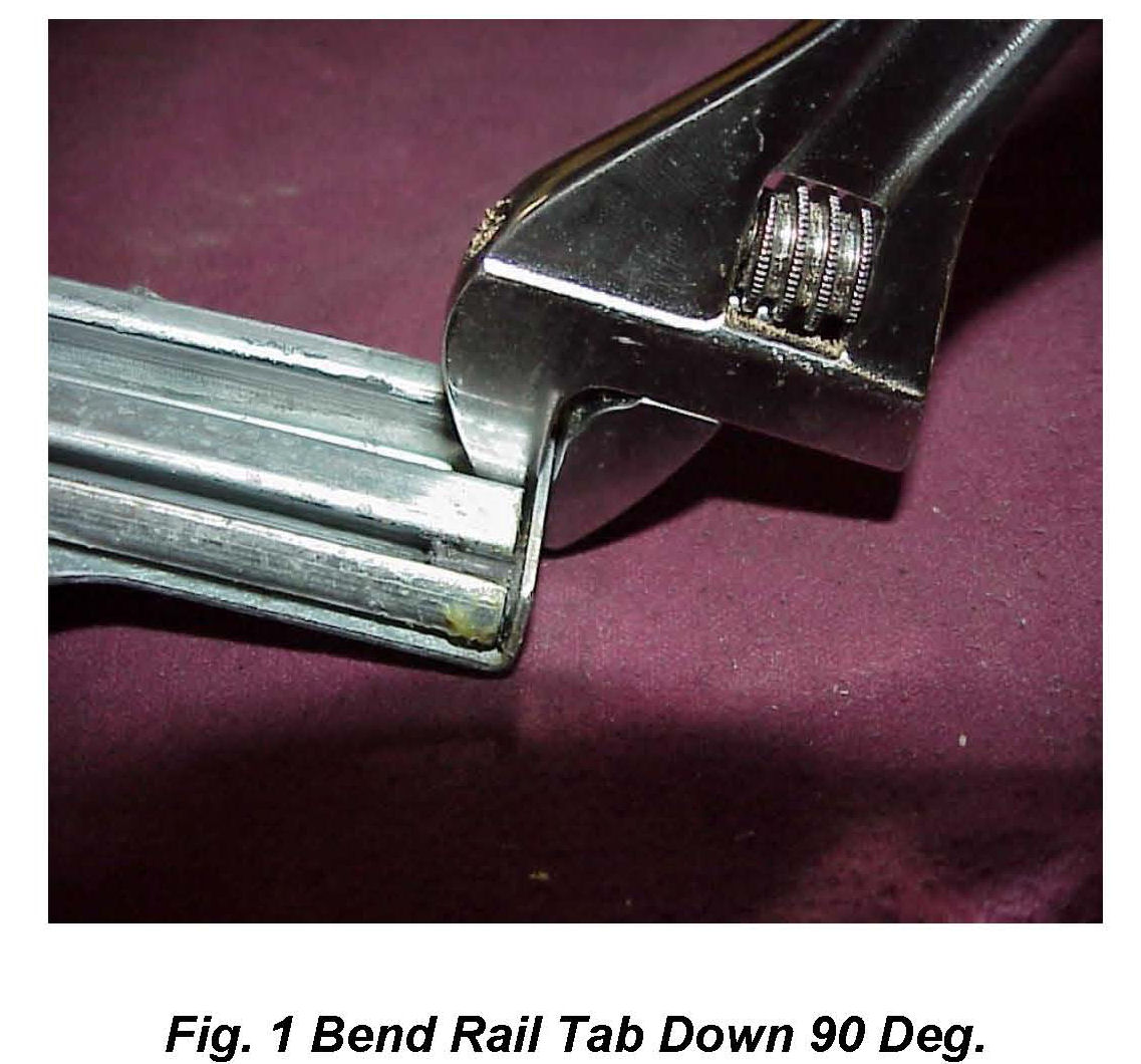 5. Use the 8 inch adjustable wrench to bend down lower Rail Bracket Tab 90° (Fig 1).